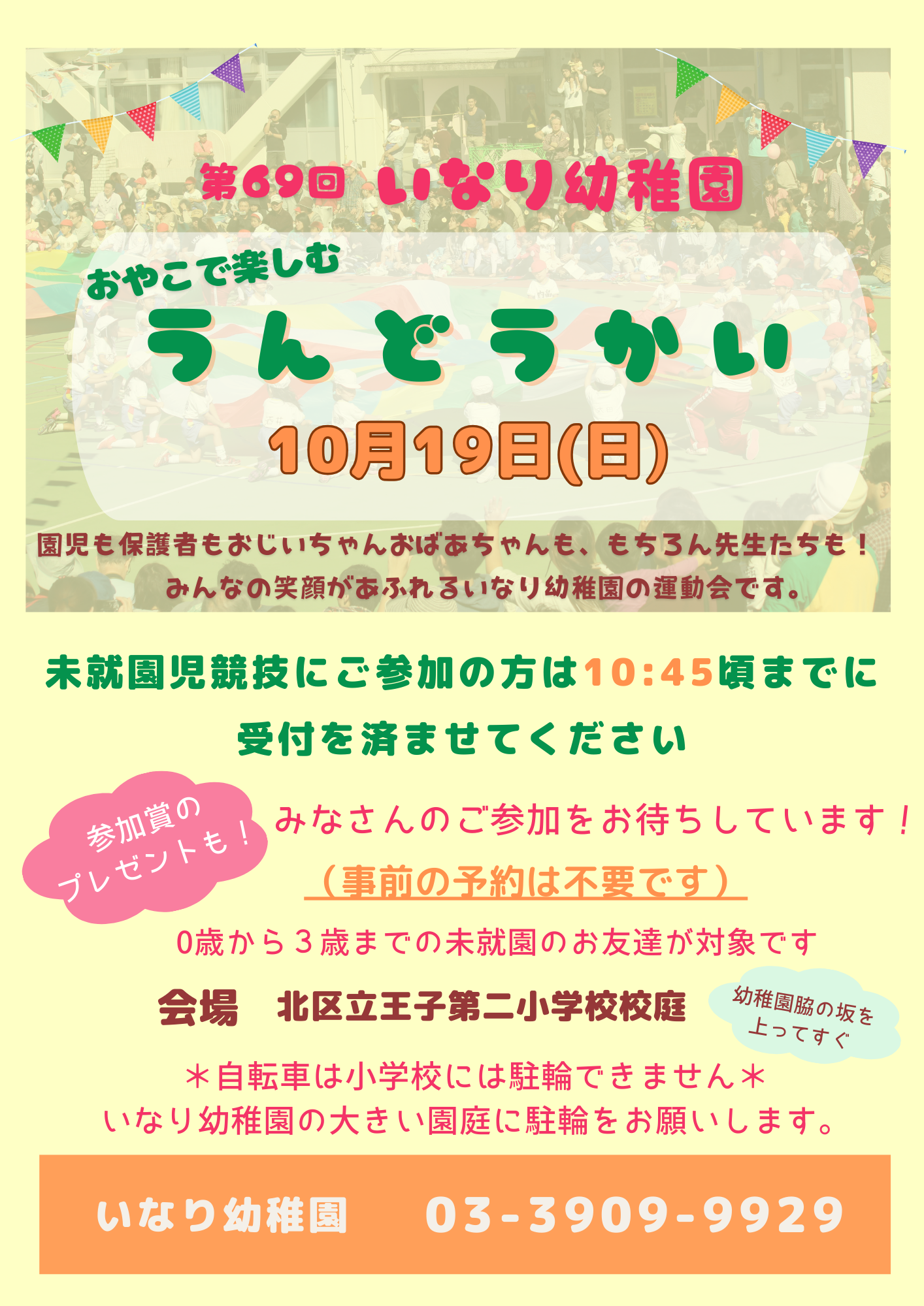 *未就園児競技にご参加の方は、10:45頃までに受付を済ませてください。