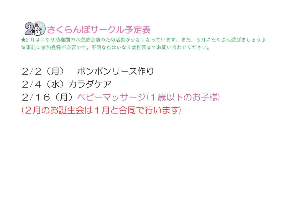 - 【さくらんぼサークル】1月・2月プログラム 受付中です