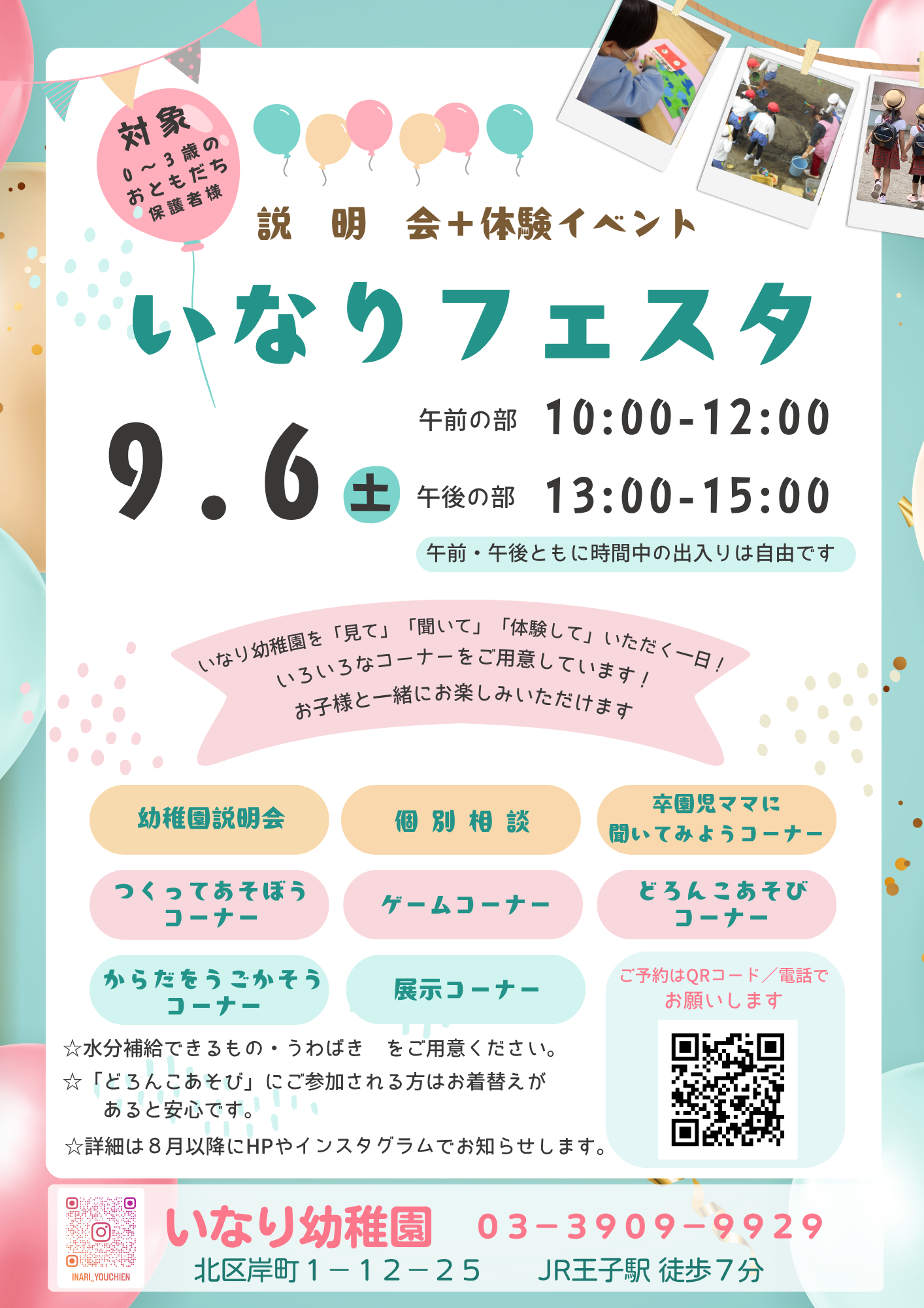 *令和7年度内に幼稚園見学会等の説明会やいなりフェスタ(9/6)にご参加いただいた方には、