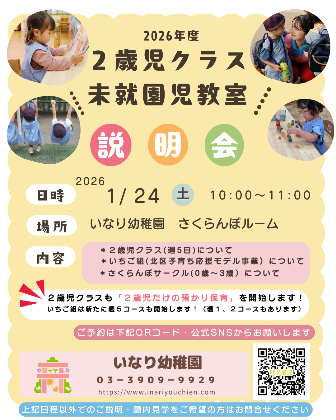 令和8年度2歳児クラス入園の説明会を以下の通り実施します。
